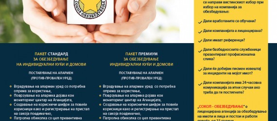 Ја препорачуваме Агенцијата за обезбедување на имот и лица СОКОЛ ОБЕЗБЕДУВАЊЕ затоа што секогаш се кооперативни и отворени за соработка, во најкраток можен временски рок постапуваат согласно со нашите барања, имаат човечки ресурси за сите прашања ( од комесар за безбедност и контрола кој е задолжен за оперативно водење на сите настани,со фатени сторители , соработуваат со службите на МВР, имаат техничари за поставување и одржување на безбедносни системи, раководител за човечки ресурси) професионални се во комуникацијата, редовно доставуваат извештаи за редовните и вонредните превземени активности и настани.